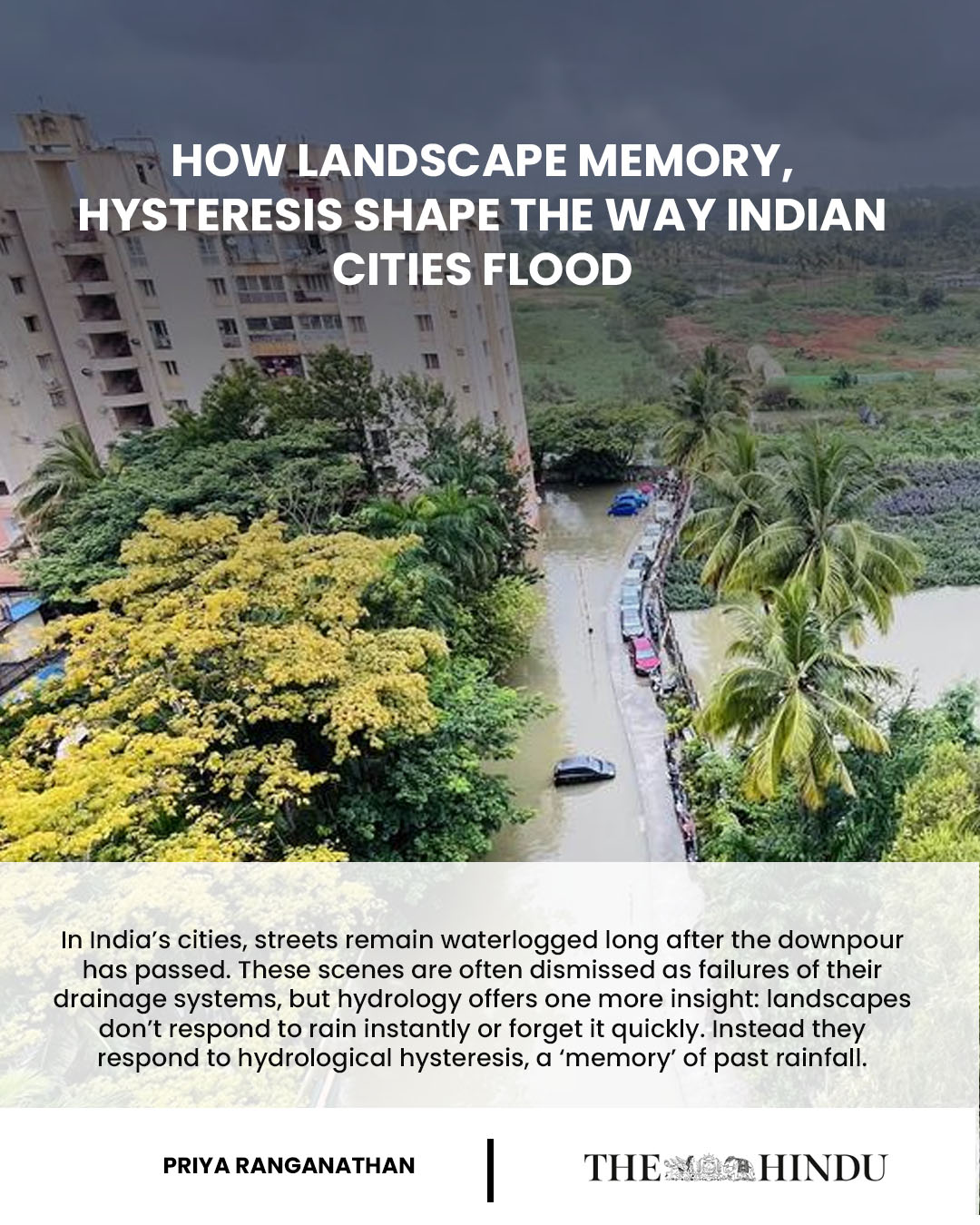 In India’s cities, streets remain waterlogged long after the downpour has passed. These scenes are often dismissed as failures of their drainage systems, but hydrology offers one more insight: landscapes don’t respond to rain instantly or forget it quickly. Instead they respond to hydrological hysteresis, a ‘memory’ of past rainfall